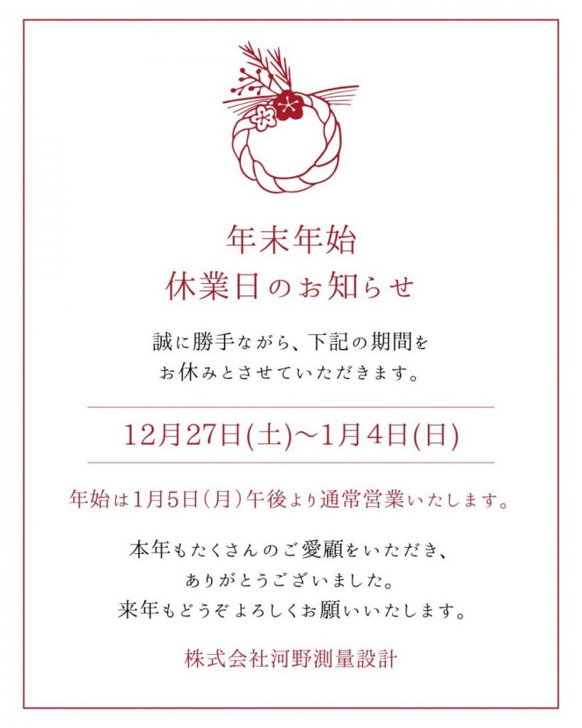 年末年始休業日のお知らせ